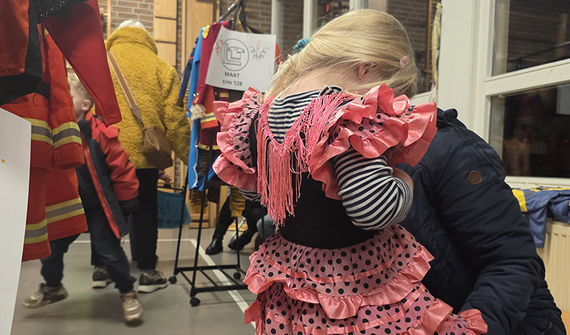 “Als kinderen uit hun ‘oude’ carnavalskleding zijn gegroeid, is het leuk dat je op school een gratis outfit mee kunt nemen. Ze vieren namelijk meerdere dagen carnaval, op school, op straat tijdens de optocht en het kindercarnaval bij Jan&Jan. Als je dan voor alle dagen een nieuw pak moet kopen, dat volgend jaar waarschijnlijk al weer te klein is, wordt het een duur feest.”